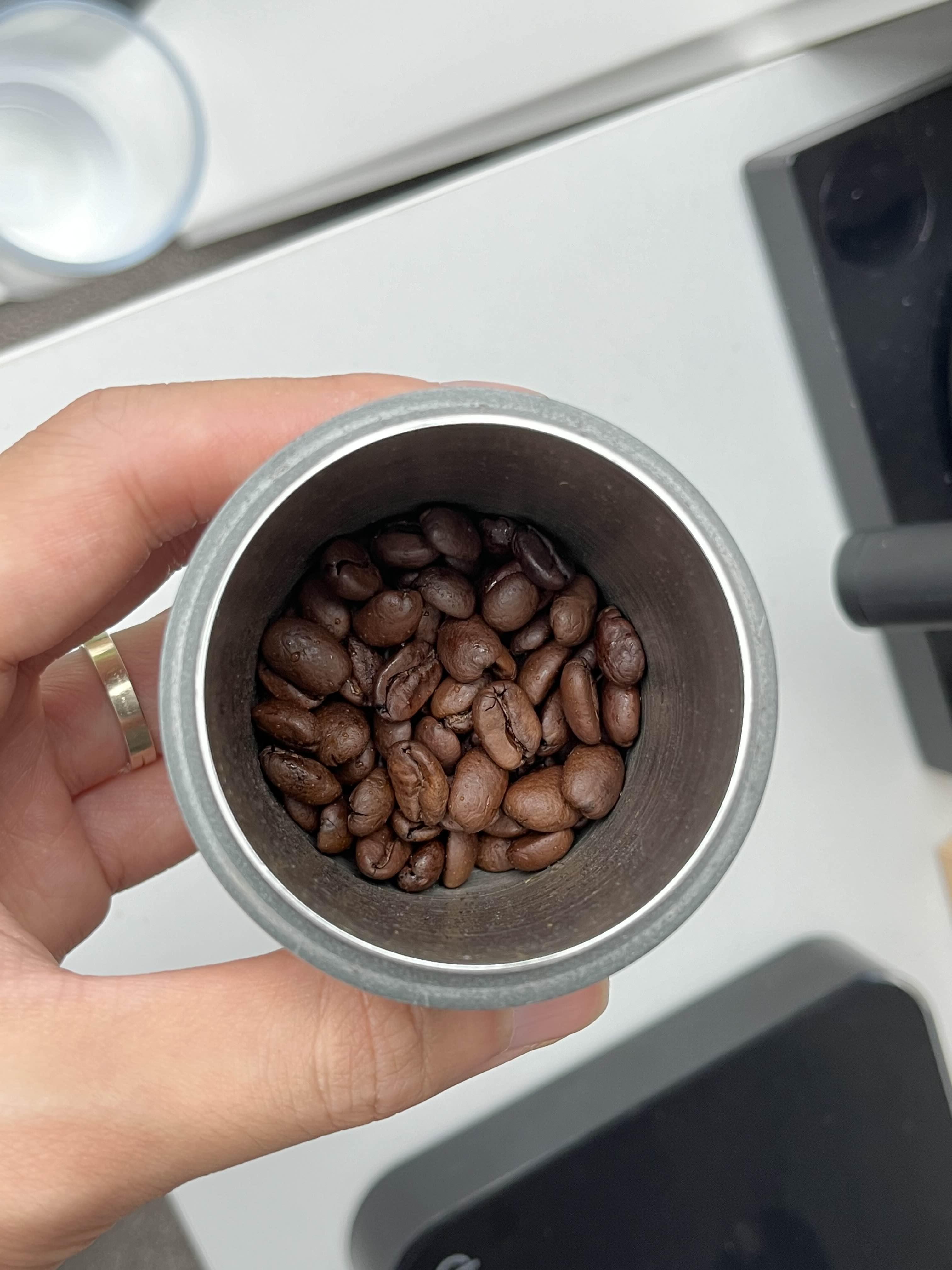 그라인딩을 하기 전, 원두의 컬러를 체크해보면 확실히 필터 로스트로 출시가 되는 원두이지만 전체적으로 다크 한 느낌이 듭니다. 미디엄 포인트인 것 같습니다.